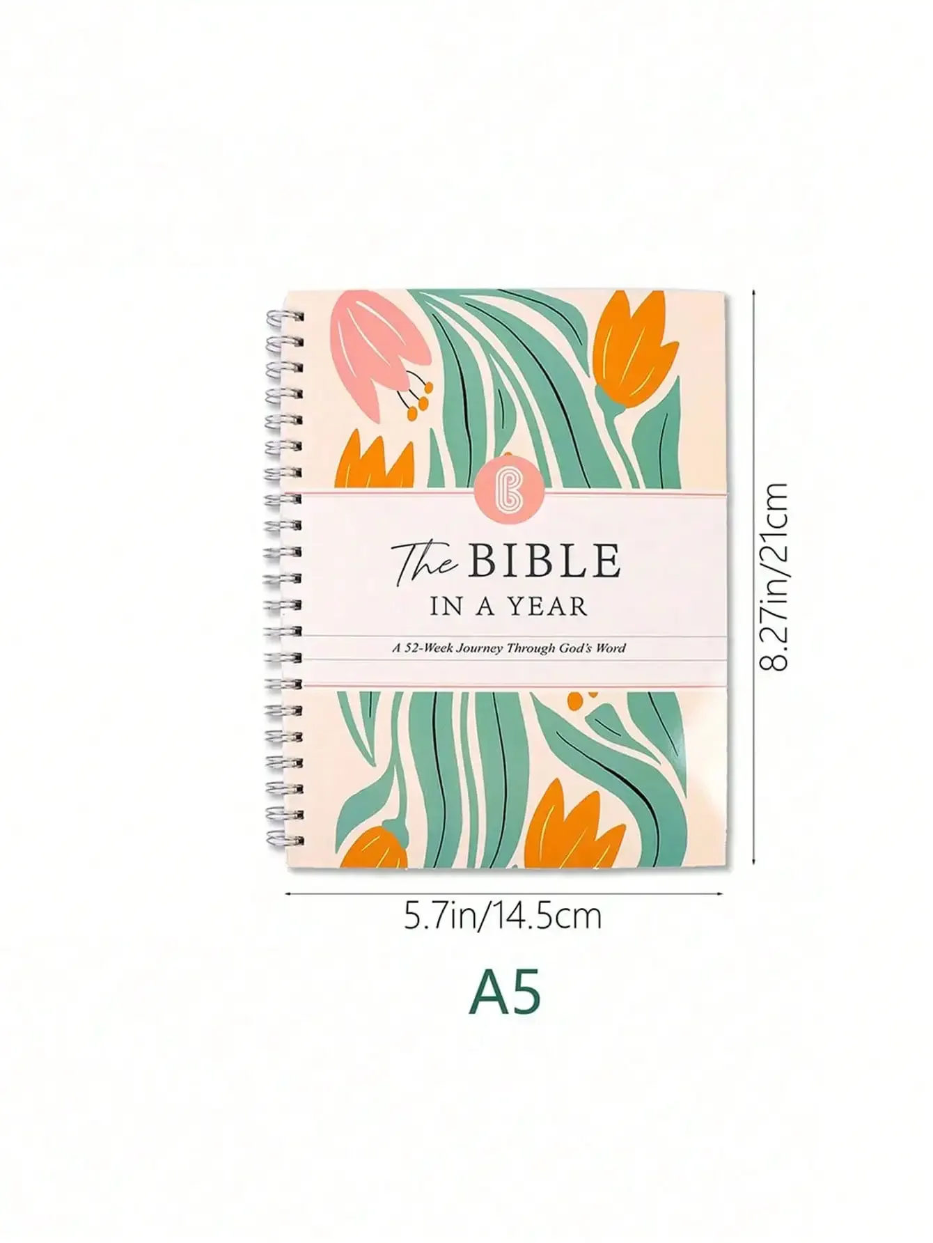 1/2-Set A5 "Bible in a Year: 52-Week Study Spiral Notebook" with Guide, Women's Bible Study Plan, Holiday Gift